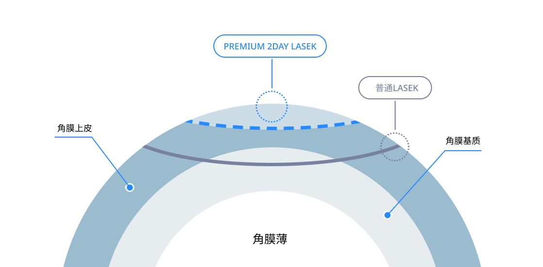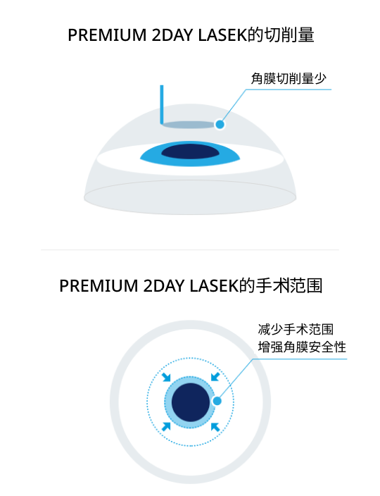 传统的LASEK手术在激光切削角膜后直至角膜上皮再生为止需要5天左右的时间, PREMIUM 2DAY LASEK只需48 小时即可快速回归日常。