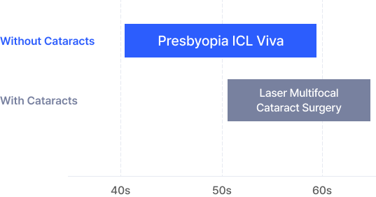 Presbyopia ICL Viva is a lens implantation procedure designed for individuals aged 40 and above. It allows for surgery without corneal reshaping, making it suitable for those with thin corneas, high or extreme myopia. This procedure can simultaneously correct presbyopia without the need for cataract surgery.